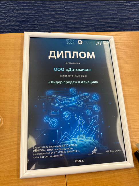 По итогам 2025 года компания «Датомикс» получила награду от разработчика программного комплекса ЛОГОС — ФГУП «РФЯЦ ВНИИЭФ» — за высокие результаты по внедрению и поставке программного комплекса на предприятия промышленности и вклад в развитие отечественных инженерных расчетных технологий.